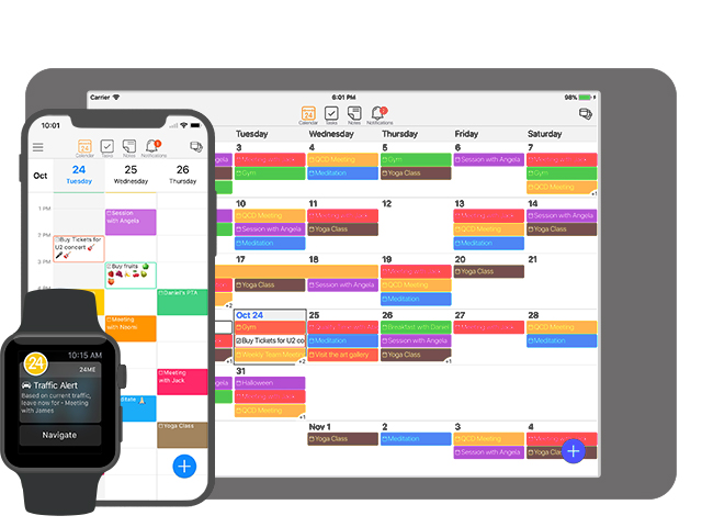 Smart and sophisticated calendar with multiple views and beautiful design that makes it so fun to use. Tasks, events, and notes are all listed together on the calendar and can be managed from one place.